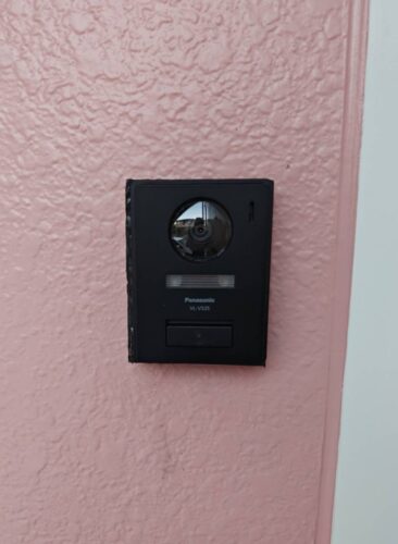 新しく設置したのはカメラ付きインターホンです。玄関子機にカメラが搭載されており、訪問者の顔を室内モニターで確認できます。これにより、不審な訪問や営業などを事前に判断できるため、防犯面で大きな安心につながります。
