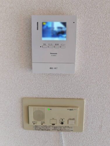 既存の設備は音声通話のみのシンプルなインターホンでした。外から呼び出しがあると室内の受話器で会話するタイプで、訪問者の顔は確認できません。築年数が経過した春日井市の賃貸住宅では、このタイプがまだ設置されているケースも少なくありません。