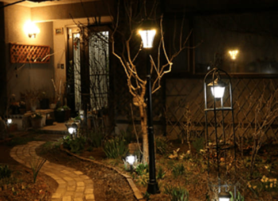 玄関のウェルカムライトや庭の照明、車庫の照明など、屋外の照明設置もお任せください。人感センサー付きライトや、防犯カメラなど、屋外でも防水機能付きの照明等を取り付けします。